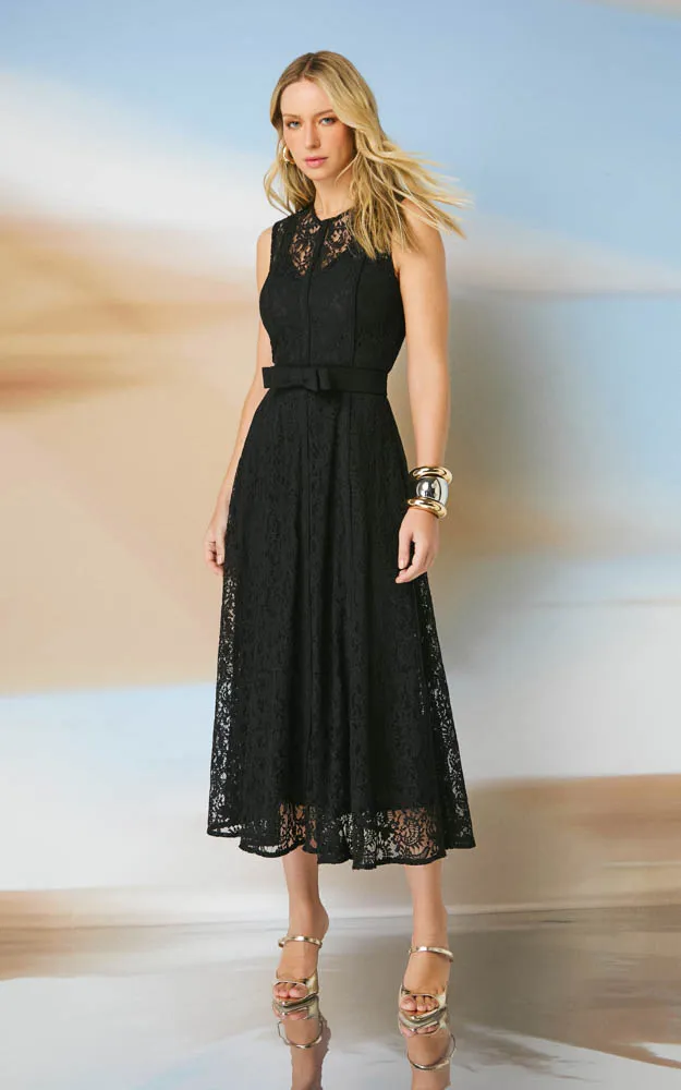 Vestido midi feminino em renda, com detalhes que valorizam o acabamento e o caimento. Uma peça clássica e elegante, perfeita para ocasiões formais e eventos especiais.